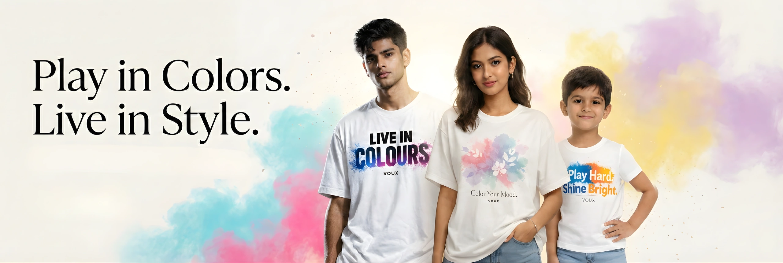 VOUX Kids “Let The Colors Fly” Holi Special Printed Cotton T-Shirt For Kids