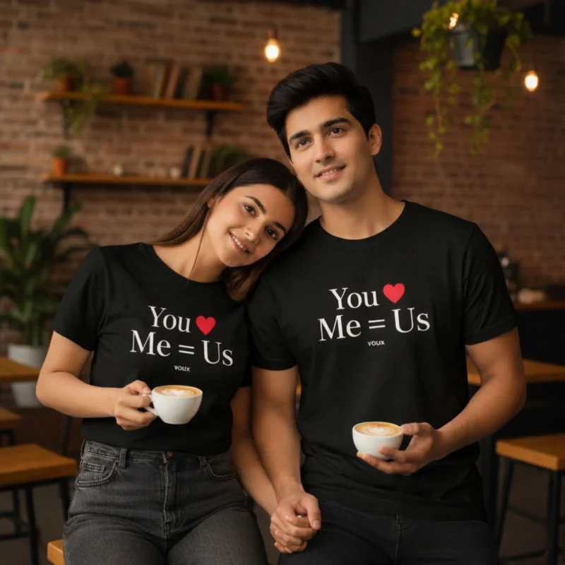 VOUX “You ♥ Me = Us” Valentine Special Printed Regular Fit T-Shirt Combo (Men & Women / Unisex)